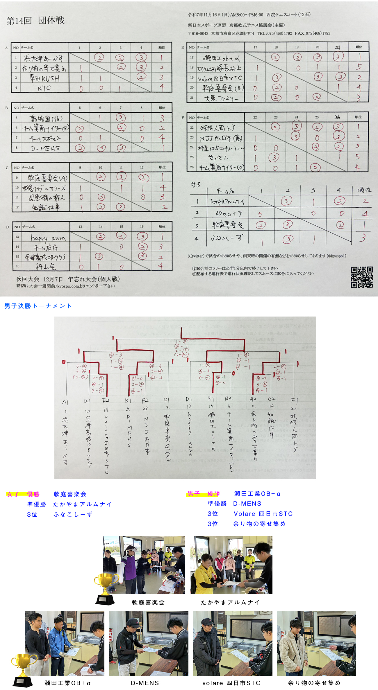 ■11月16日(日曜) 第14回秋 クラブ対抗戦(★団体戦) … └★西院テニスコート(12面)